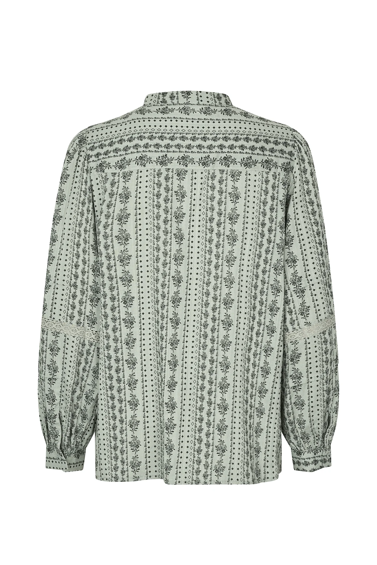 The PaulinaLL shirt is a beautiful and detailed blouse that combines a bohemian-inspired pattern with a modern cut. It is made from a comfortable material that ensures all-day comfort. The shirt features delicate lace running over the sleeves and down the front, adding a feminine touch to the design. The loose fit and long sleeves give the blouse a relaxed and airy look. The button-down front makes the shirt easy to style. Pair it with the DiamondLL skirt in the same fabric for a coordinated dress look.